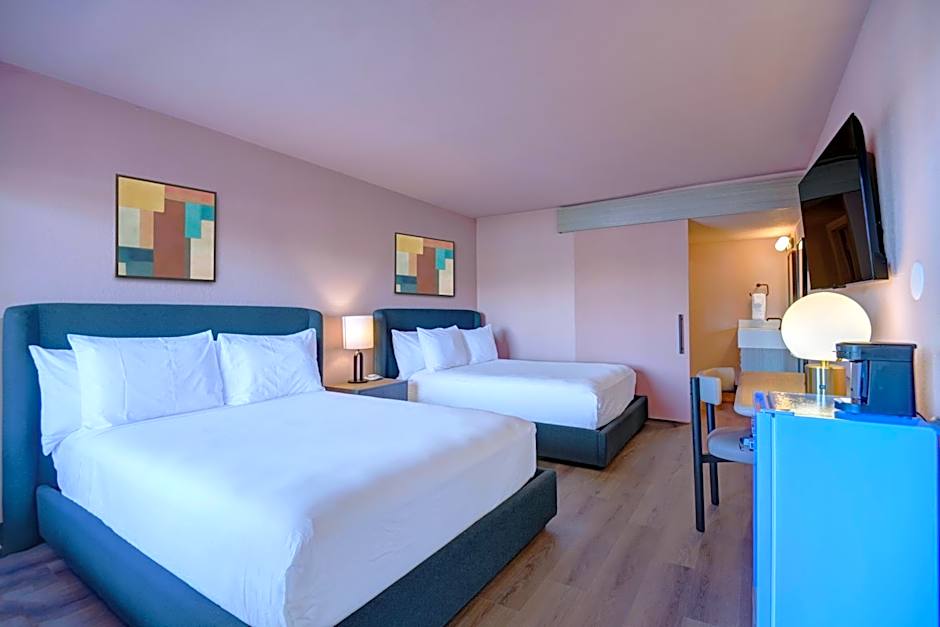 Once you step inside, you'll be greeted by a warm and welcoming atmosphere that feels like a home away from home. Dive into the refreshing outdoor swimming pool, where you can lounge with beach umbrellas and chairs or strike a pose for your next social media post. Keep your fitness regime on point at the complimentary fitness center, and thanks to free Wi-Fi, you can keep your friends updated on all the fun you're having in Palm Springs. Plus, for pet lovers, your furry companions are welcome at The Dunes Hotel for an extra charge—because vacations are meant for the whole family!